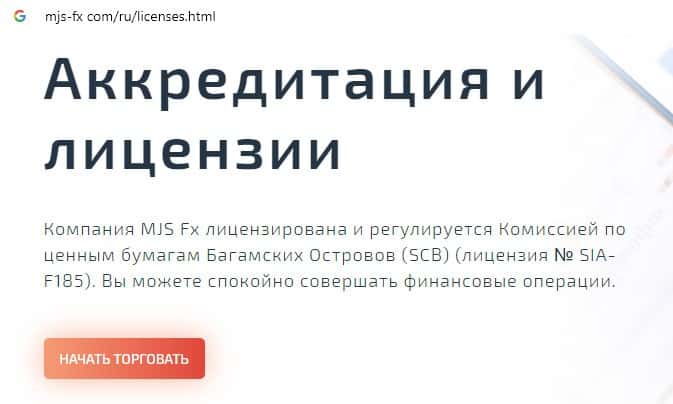 Аферисты ЭмДжейЭс ФХ указывают информацию о том, что деятельность конторы регулируется Комиссией по ценным бумагам Багамских островов.