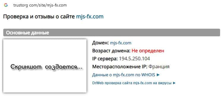 Проверка интернет-ресурса аферистов MJS FX на trustorg com показала, что возраст домена определить невозможно, мы имеем дело с очередной Форекс-кухней.
