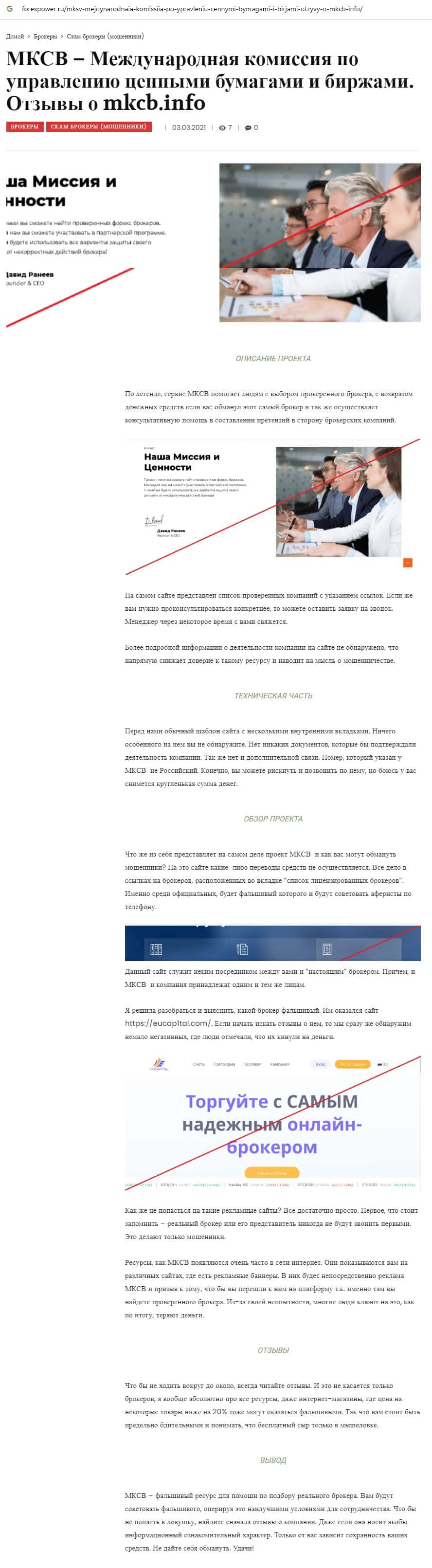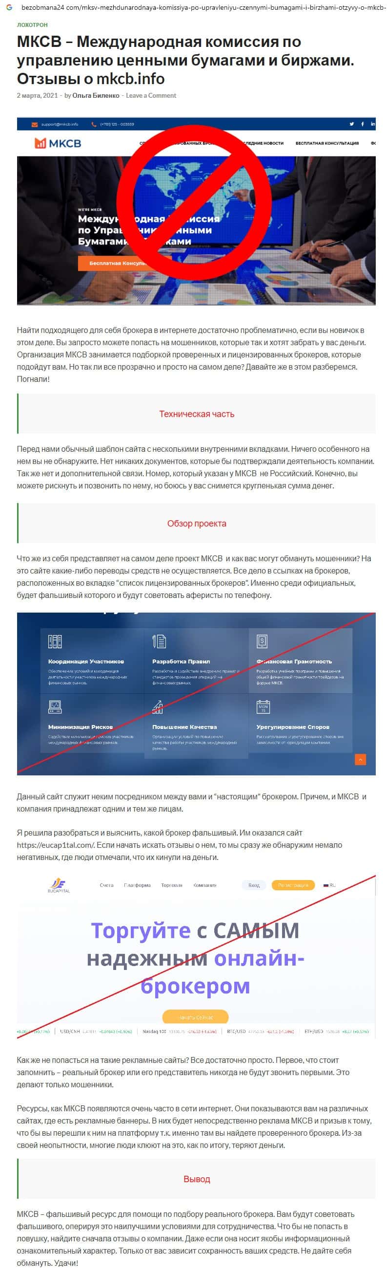 Обманщики МКЦБ также работают в одной связке с псевдо-брокером EuCap1tal, которому доверять свои денежные средства категорически не рекомендуем !!!