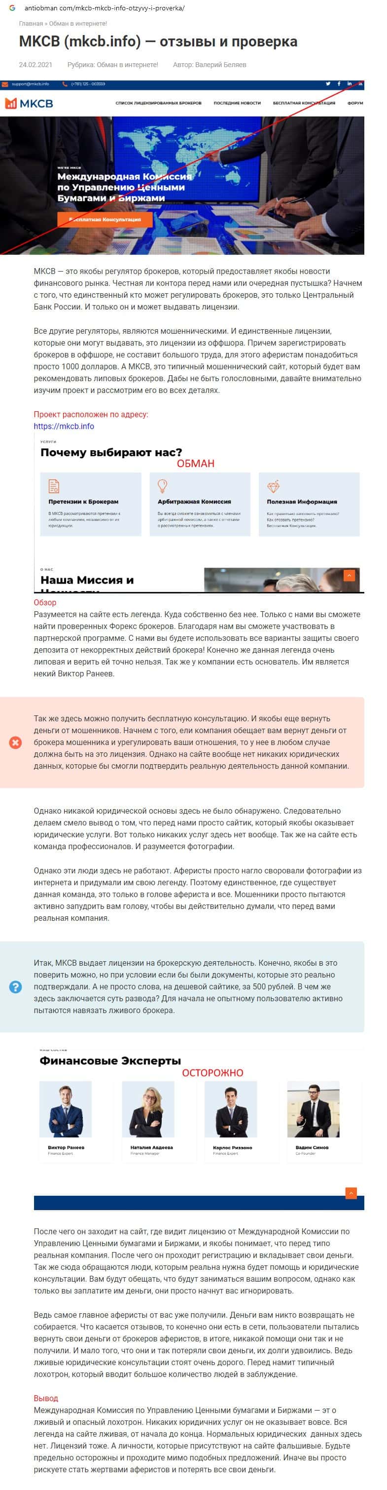- Информация о жульнической организации МКЦБ