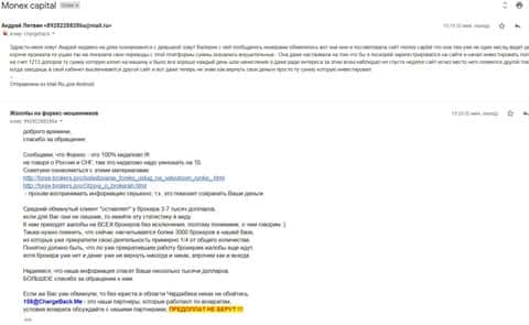 Если циничные мошенники Monex Capital Вас слили или пытались это сделать, то в такой ситуации сообщите Ваш адрес электронной почты чуть ниже, и мы во что бы то ни стало с Вами установим контакт по электронной почте.