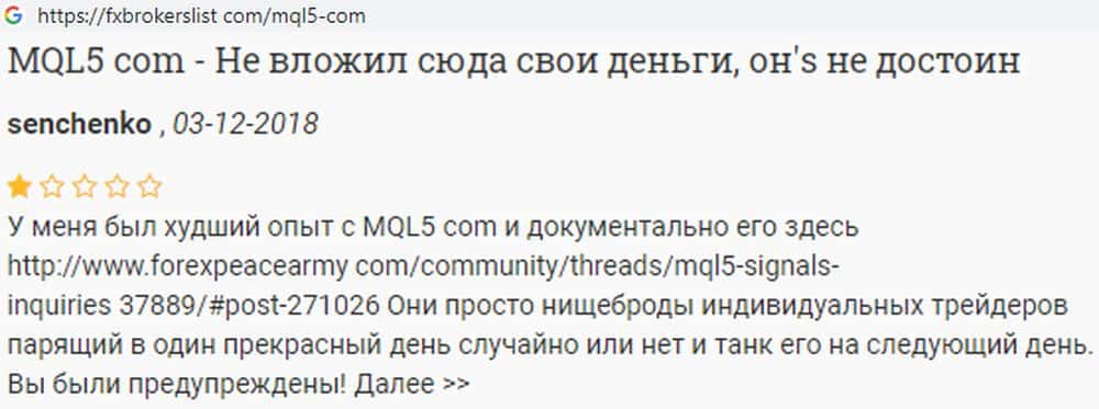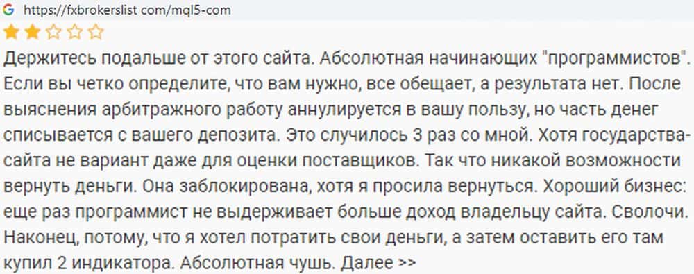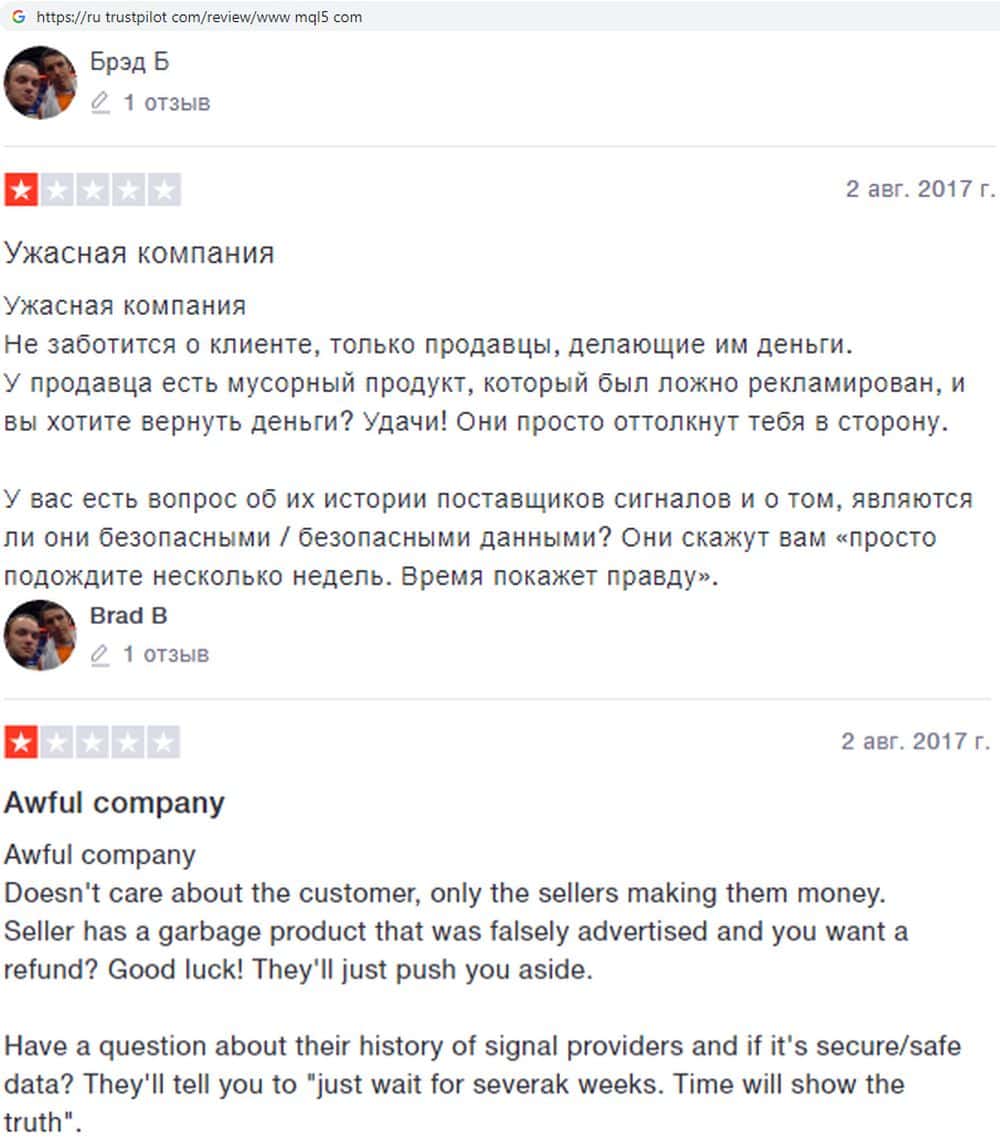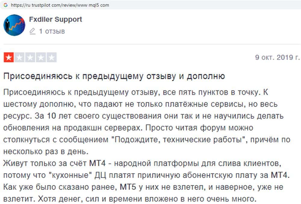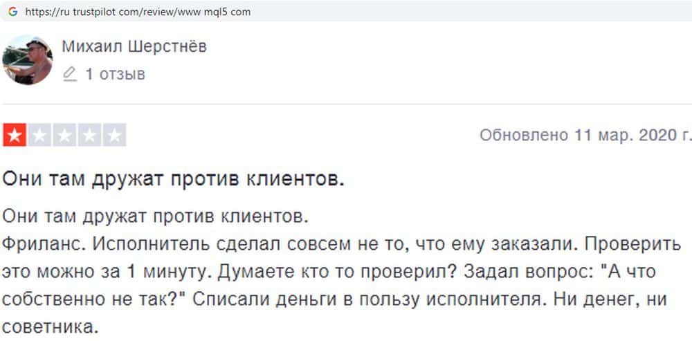 Онлайн-портал трастпилот ком пестрит сообщениями от трейдеров, которые столкнулись с грубостью и хамством со стороны жуликов MQL5 Com. Те не просто крадут деньги и продают липовые программки, которые работают в "обратную" сторону, сливая депозиты. Они еще и позволяют себе хамски относиться к трейдерам, грубить и оскорблять их.