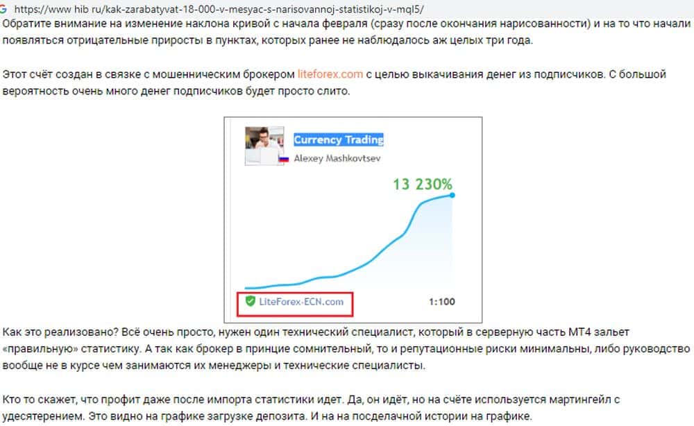 Еще на одном сайте, eto-razvod ru, трейдеры обсуждают, почему сигналы и советники в исполнении жуликов ЭмКьюЭль 5 приводят к сливу депозитов. Как выяснилось, жулики показывают на своем сайте только позиции с прибылью, подделывают торговую историю. А рекомендуемые советники демонстрируют фиктивные счета у брокеров-мошенников.