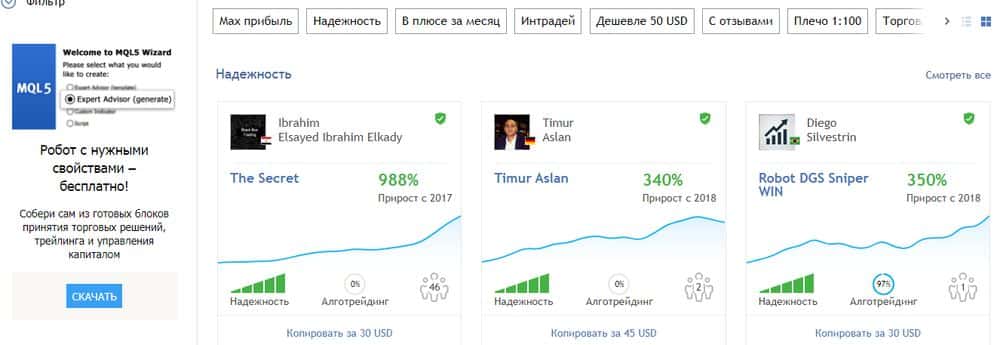 Разделы, которых трейдерам однозначно стоит избегать - это магазин приложений и торговые сигналы. Именно сюда аферисты MQL5 Com засунули все, что предназначено для слива депозитов. Стратегии показывают фиктивную торговую историю, а советники хорошо работают только при демонстрации. Еще и стоит этот шлак очень-очень дорого.