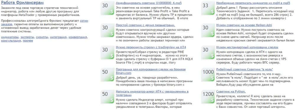 Для умельцев, которые ухватили возможность полоховодить на валютном рынке, шарлатаны ЭмКьюЭль 5 даже организовали свою биржу заказов. Так что если кому-то понадобится "сливной" псевдоторговый робот, то он смело может найти разработчика, который за определенную сумму состряпает ему подобную песочную игрушку.