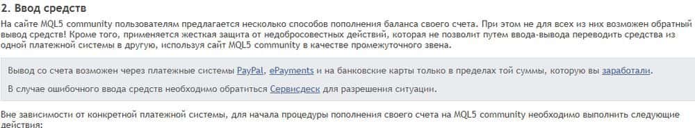 С выводом денег отдельная история - даже если вы не используете средства, которые завели на счет катал MQL5 Com, их вам уже не вернут, многие трейдеры на этом попадались. Ну, и вишенка на торте - жулики MQL5 Com никому не советуют следовать сигналам или пользоваться ботами, так что слитые депозиты - это проблема трейдеров.