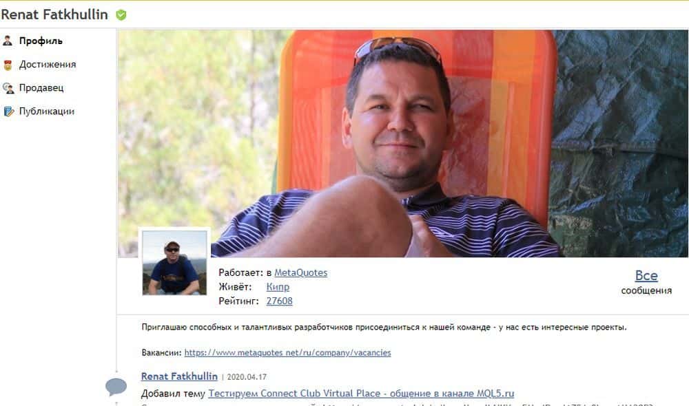 На самом ресурсе мошенников ЭмКьюЭль 5 профиль Рената Фатхуллина есть, правда там указано, что он в скам-конторе "работает". Согласно профилю, директор проживает на Кипре и регулярно зазывает новых талантливых мошенников к себе в команду. О других руководителях или подельниках лохотрона MQL5 Com информации нет.
