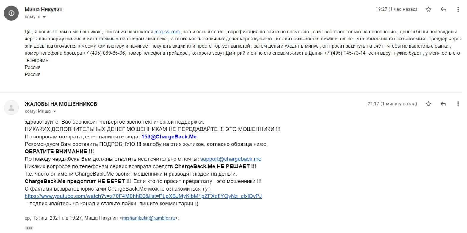 На скриншоте далее представлена жалоба на мошенническую брокерскую организацию МРГСС, которая разводит людей на деньги, в основном жителей стран СНГ.