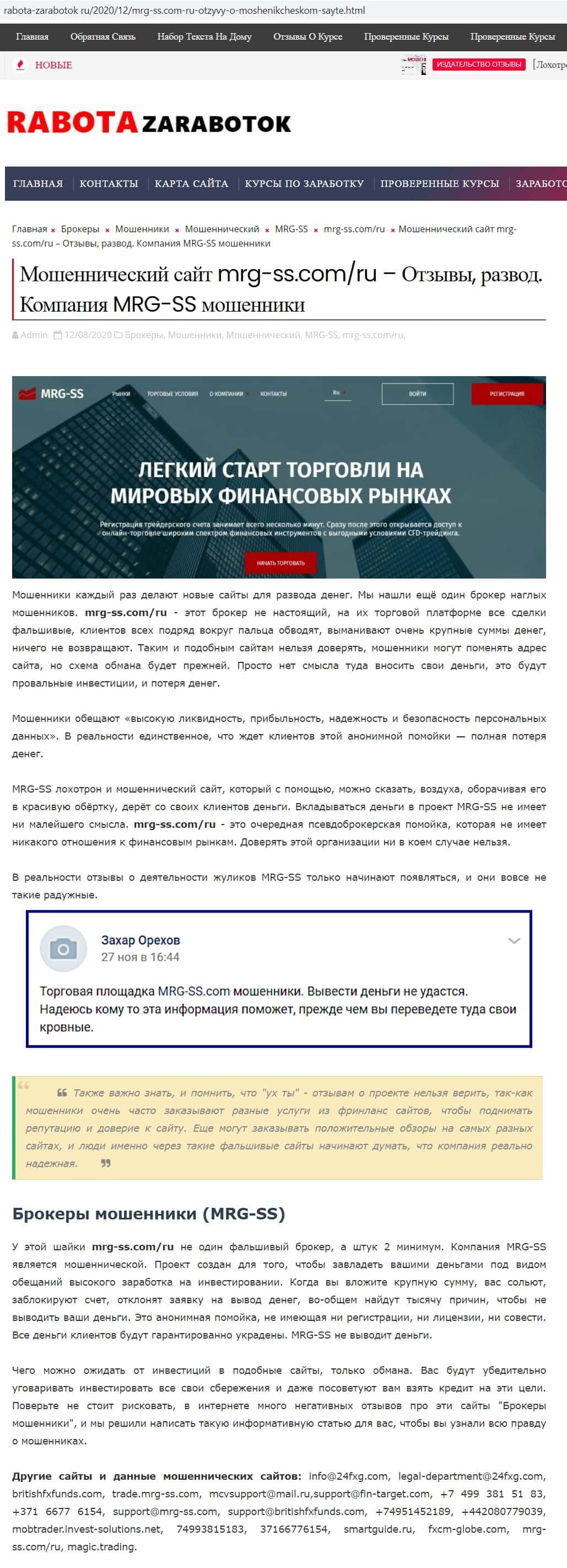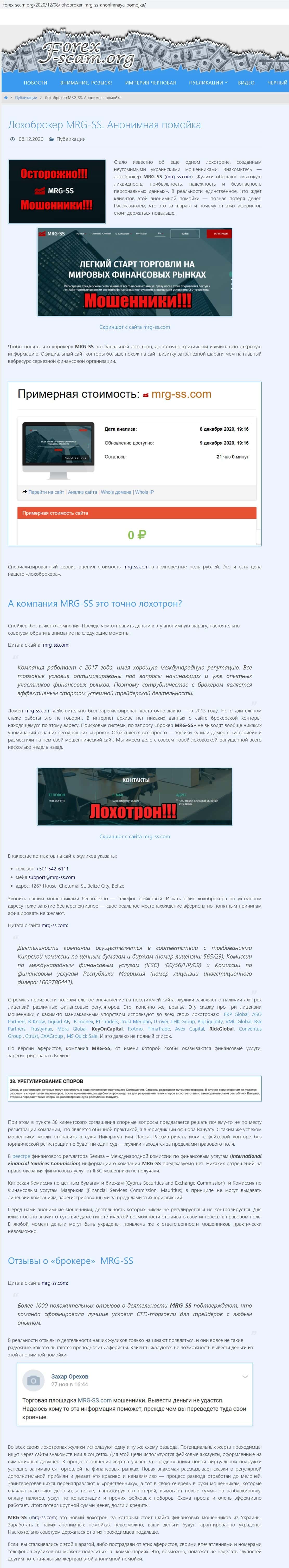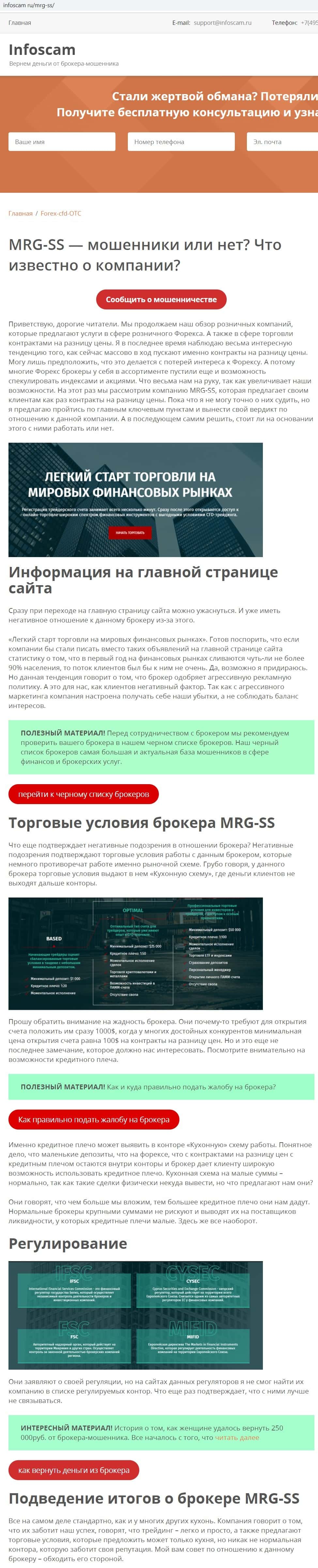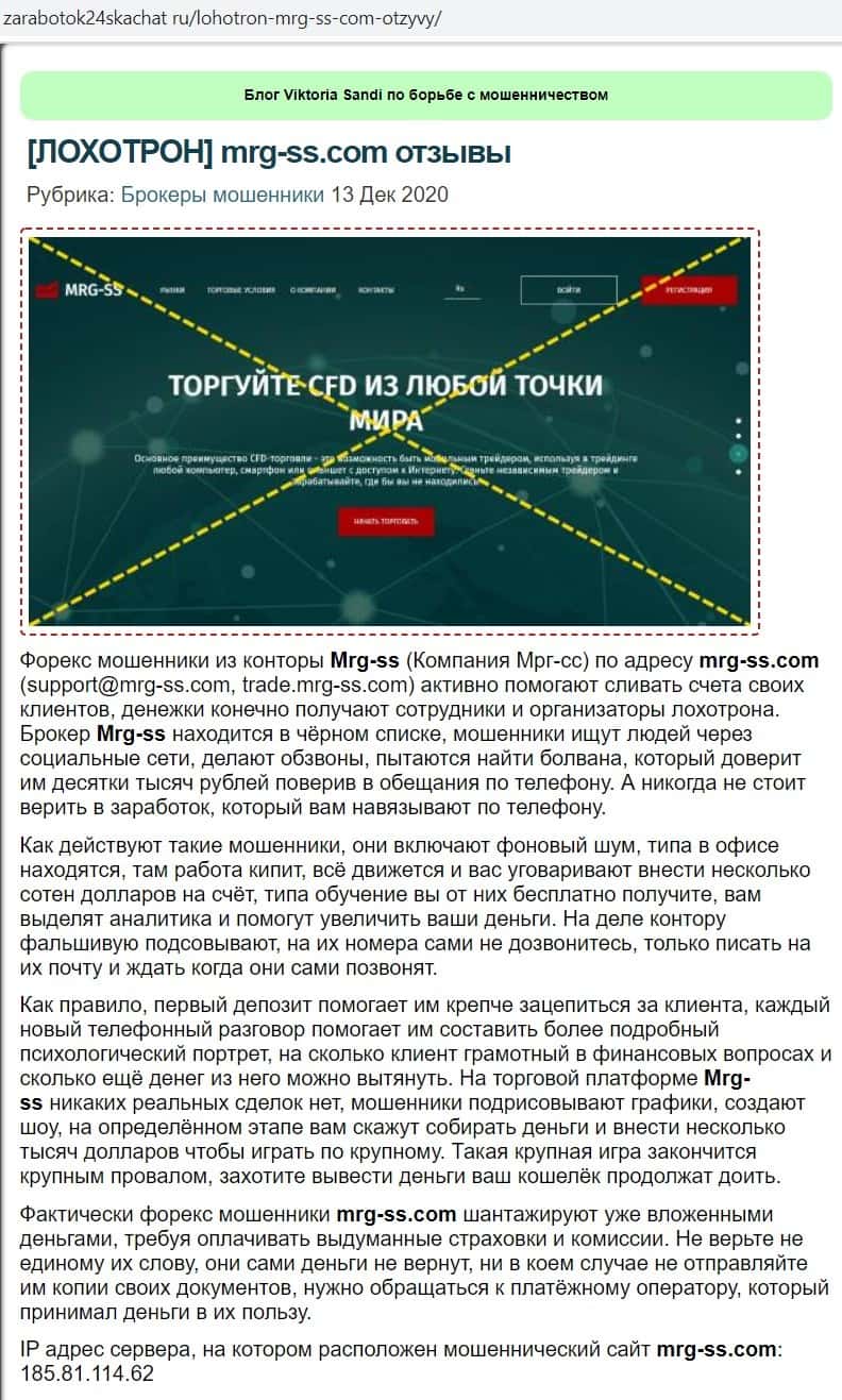 - Обзоры, разоблачающие брокерскую контору MRG SS Limited