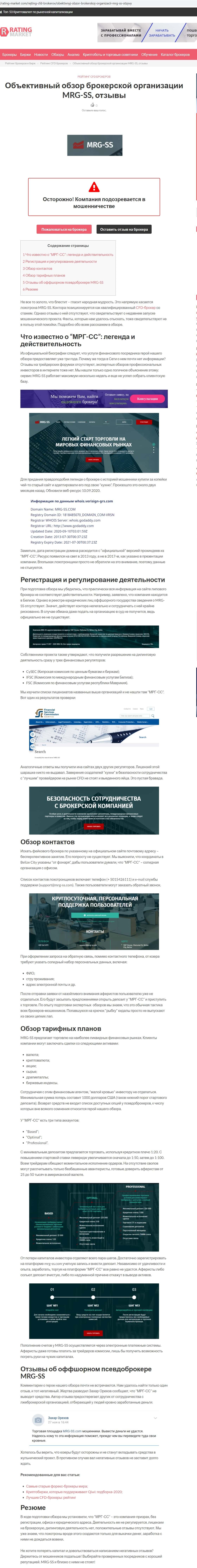 Сайт Рейтингмаркет подозревает контору МРГ СС в мошенничестве, ведь авторы статьи нашли целую кучу доказательств этого. Логичный вывод: брокер - очередной лохотрон.