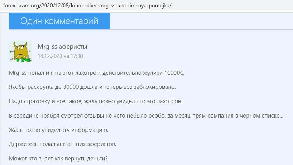 - Отзывы о жуликах MRG SS Limited, найденные в сети