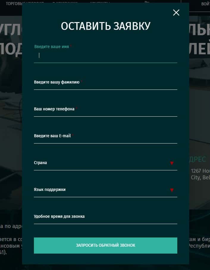 На сайте мошеннической компании MRG SS Limited имеется форма для запроса обратного звонка. Она будет использована для сбора личной информации о клиентах.