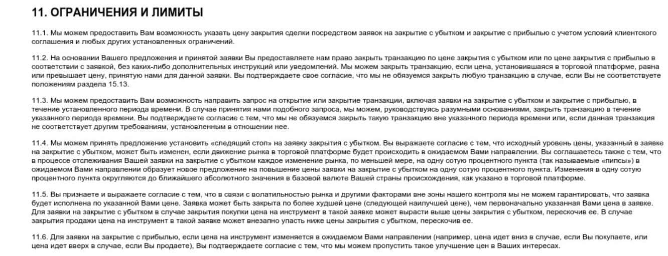 Раздел 11 клиентского соглашения конторы MRG SS Limited сообщает пользователю о том, какие лимиты и ограничения действуют на их сайте.