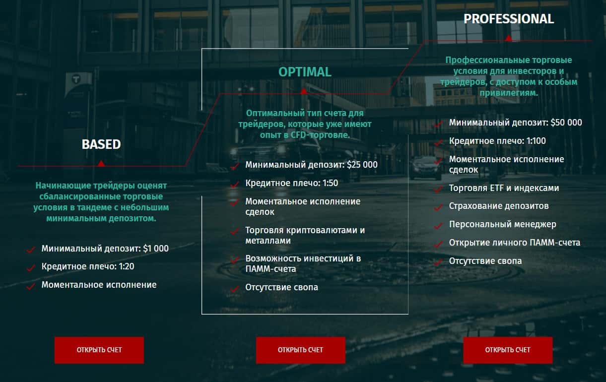 Типы счетов брокерской компании МРГ СС такие же фейковые, как и сама эта фальшивая контора. Это видно из тех условий, которые аферисты предлагают клиентам.