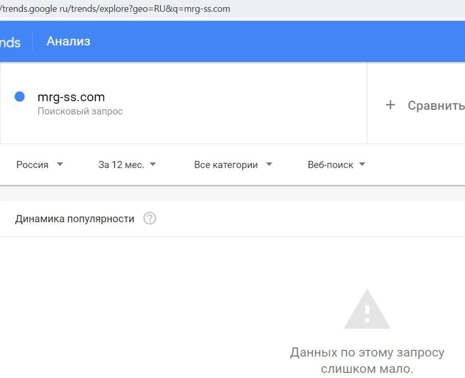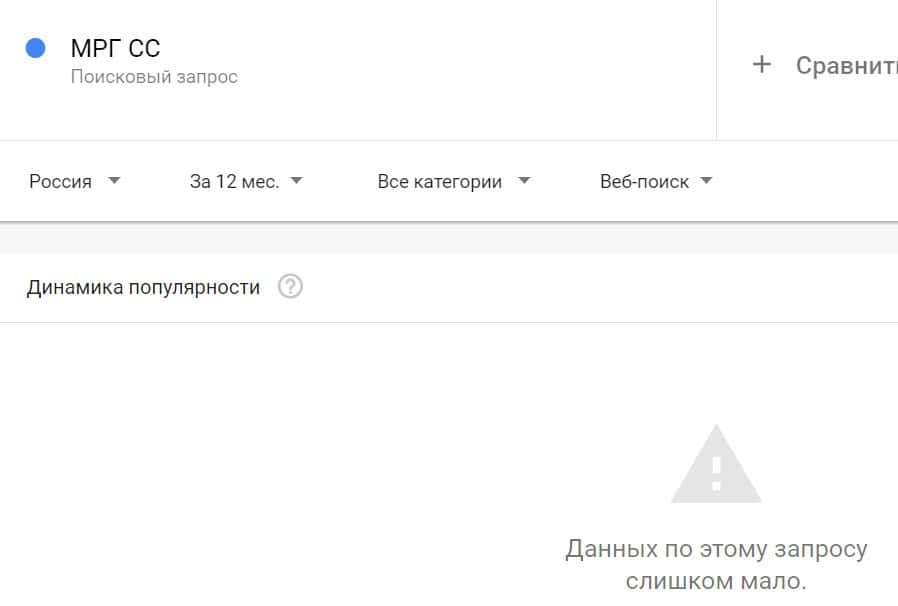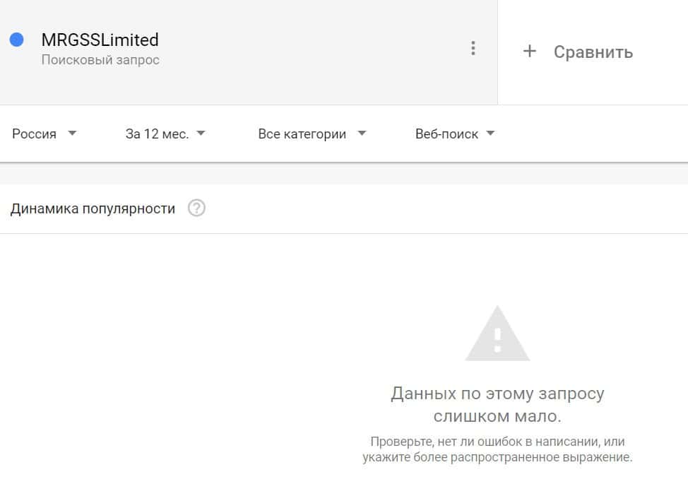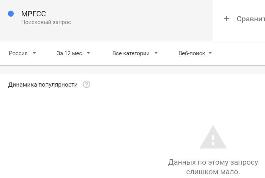 Посмотрим, насколько популярны запросы в поисковике Гугл на бренд "МРГСС", написанный на русском языке. Практически такая же ситуация.