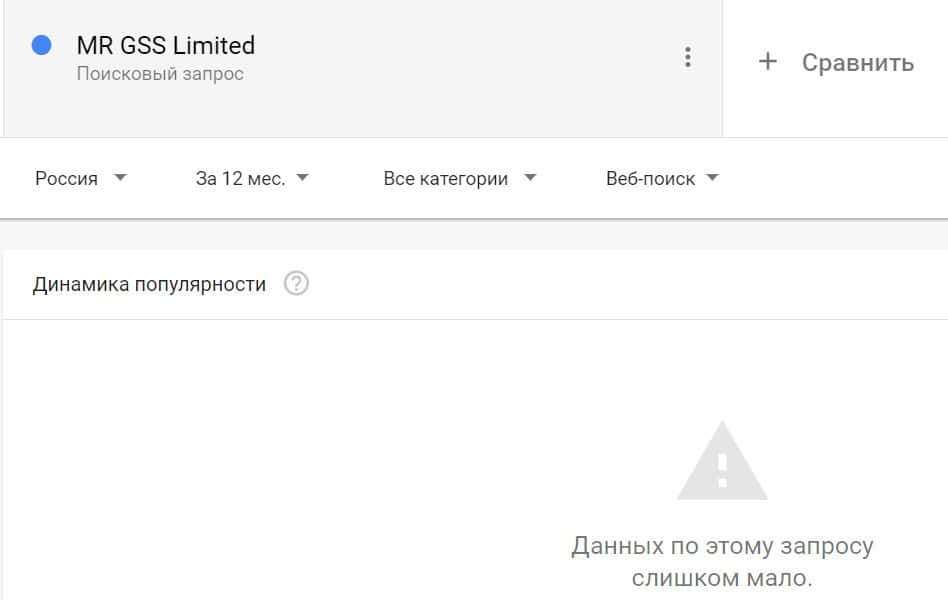 - Информация в поисковике Гугл Тренд по запросам бренда MRG SS Limited