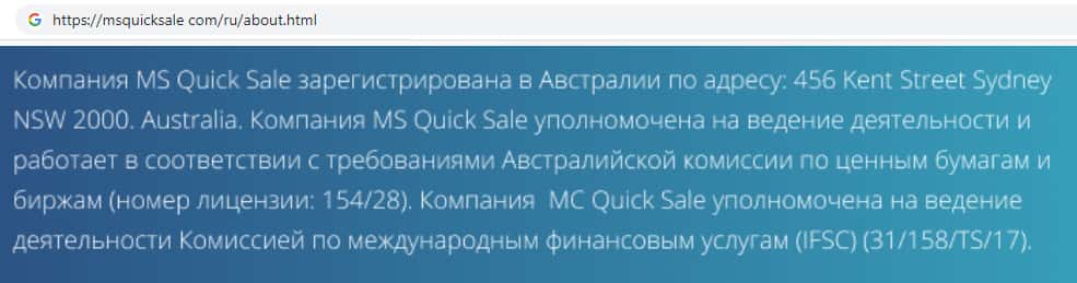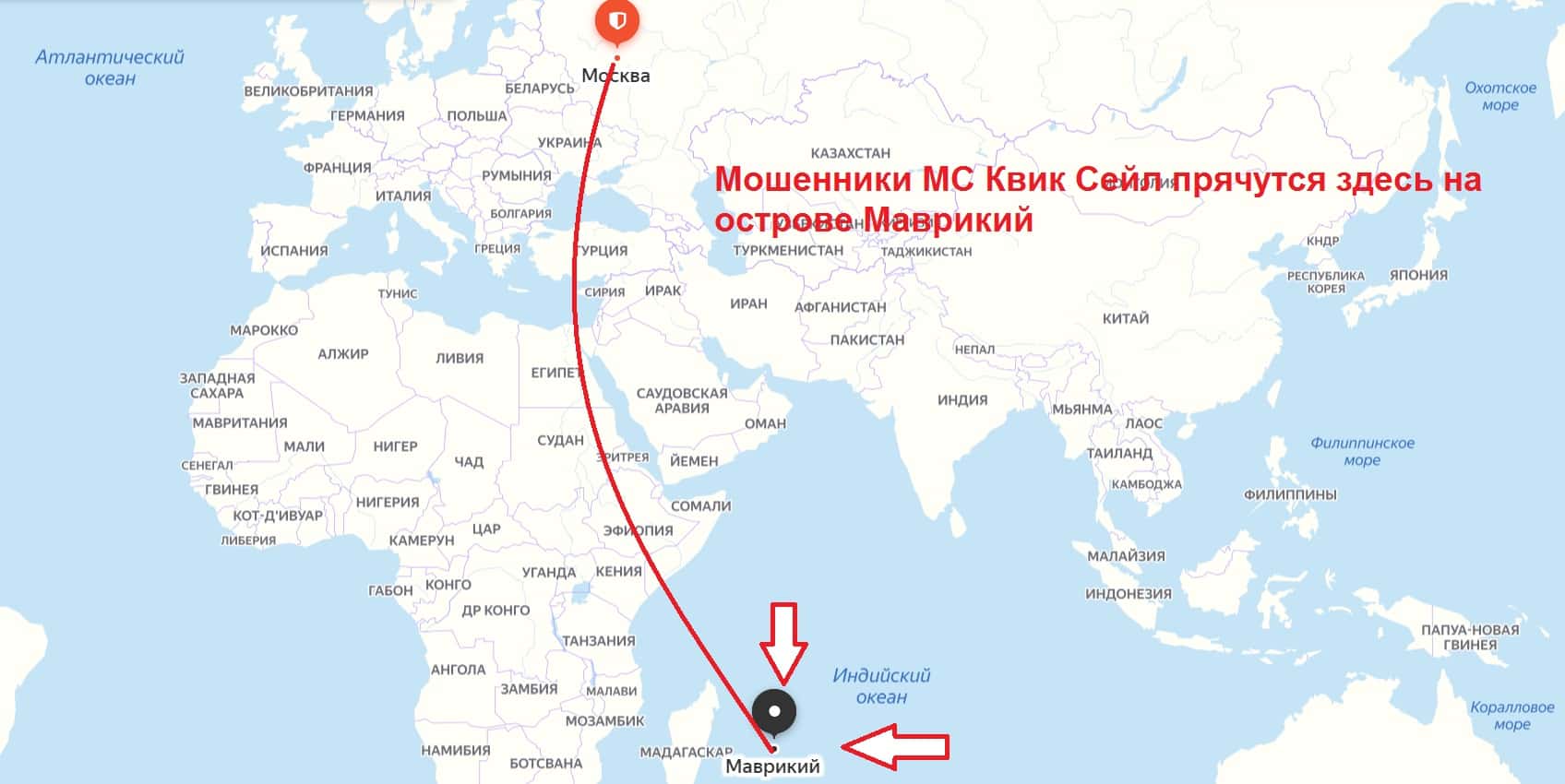 Местом регистрации скам-брокера МС Квик Сейл является оффшорное государство Маврикий, где зарегистрировано огромное количество аналогичных онлайн-лохотронов.