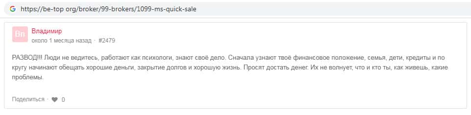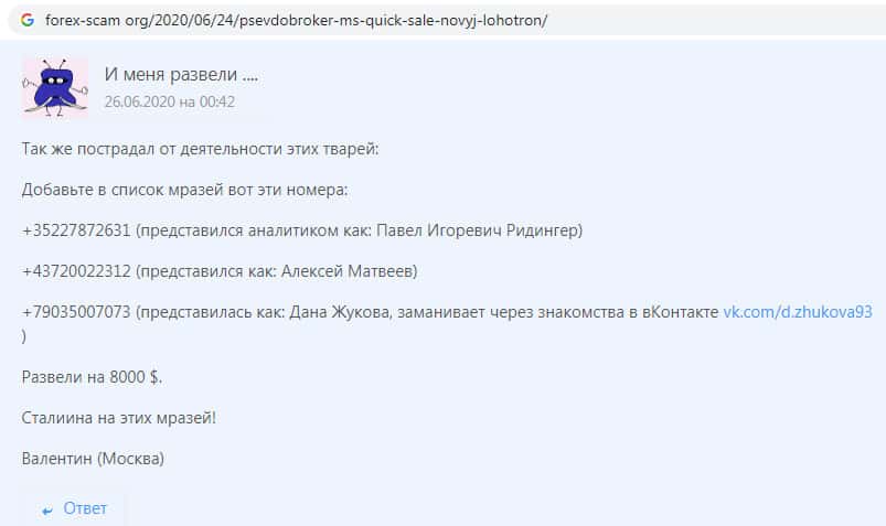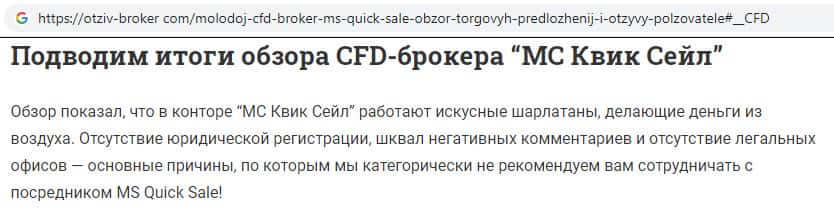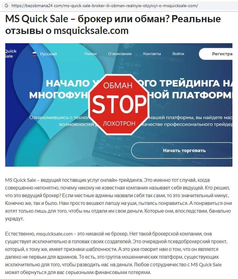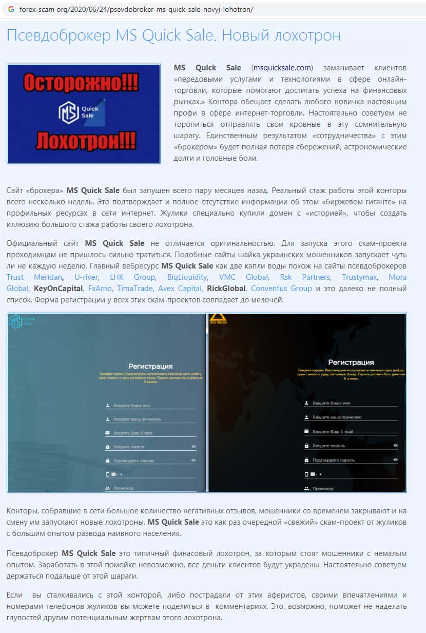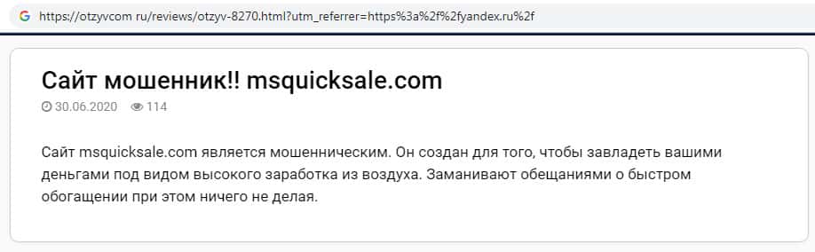 Отзывы о скам-брокере MSQuickSale, ныне присутствующие во всемирной паутине