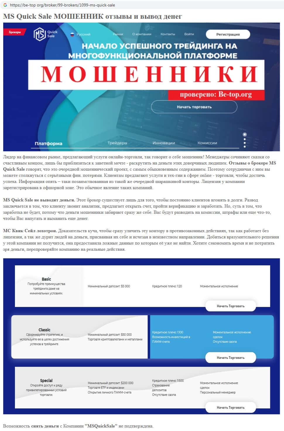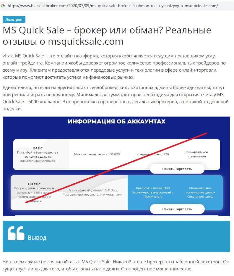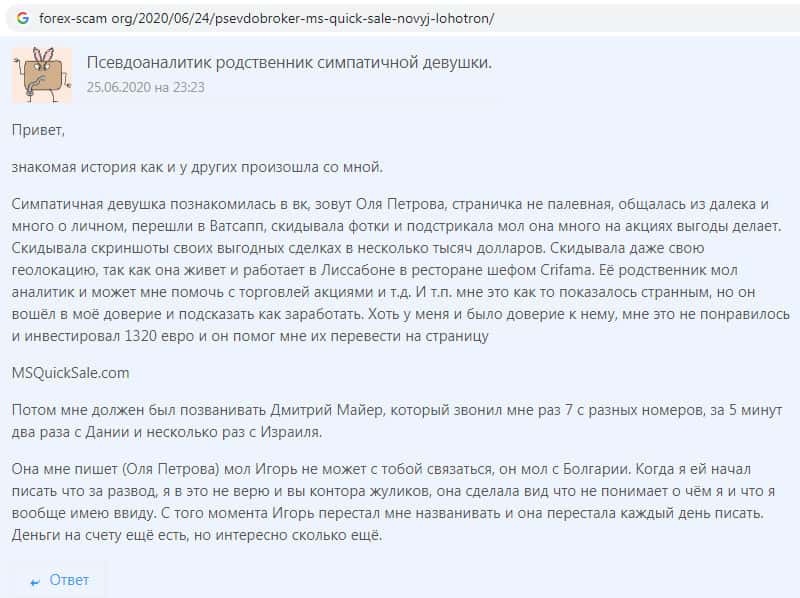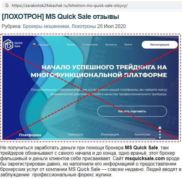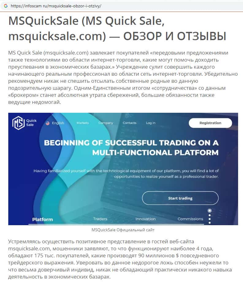 - Отзывы о скам-брокере MSQuickSale, ныне присутствующие во всемирной паутине