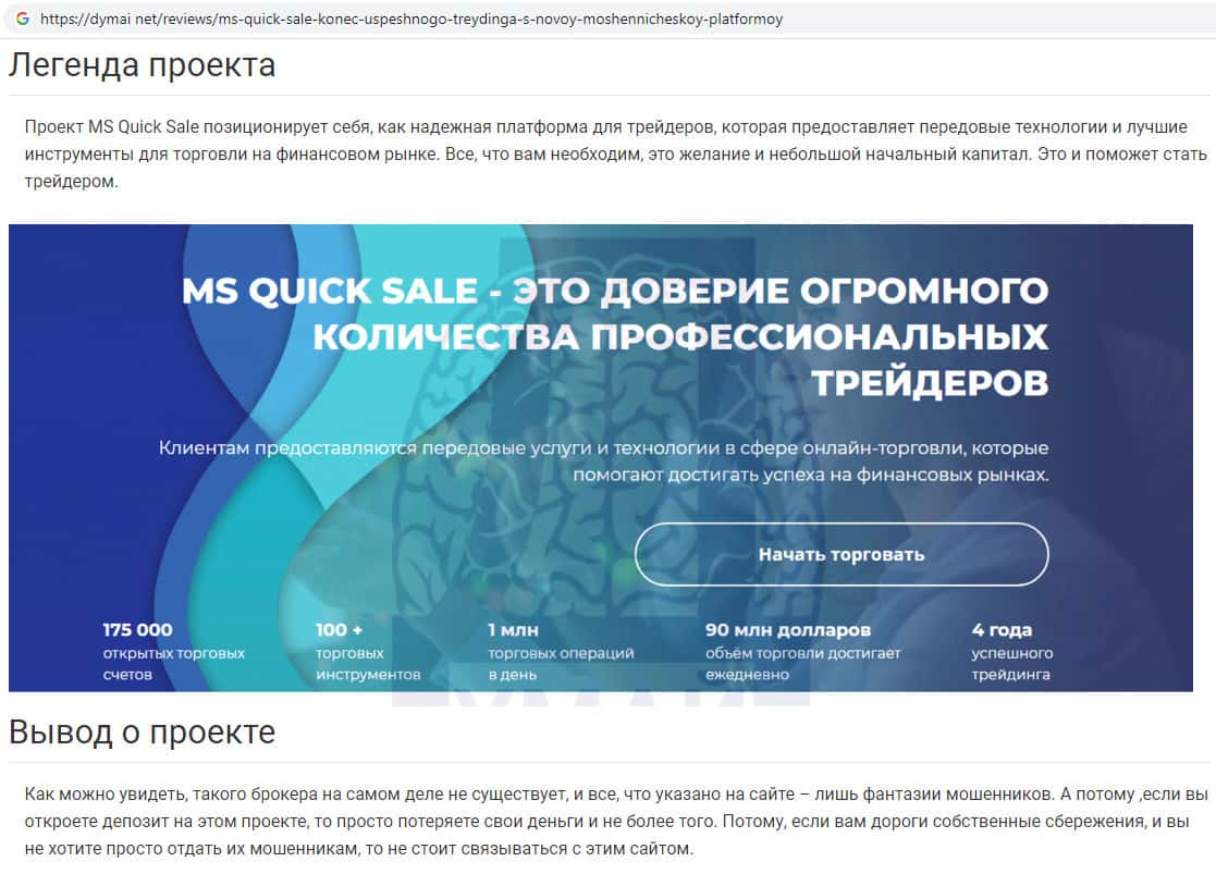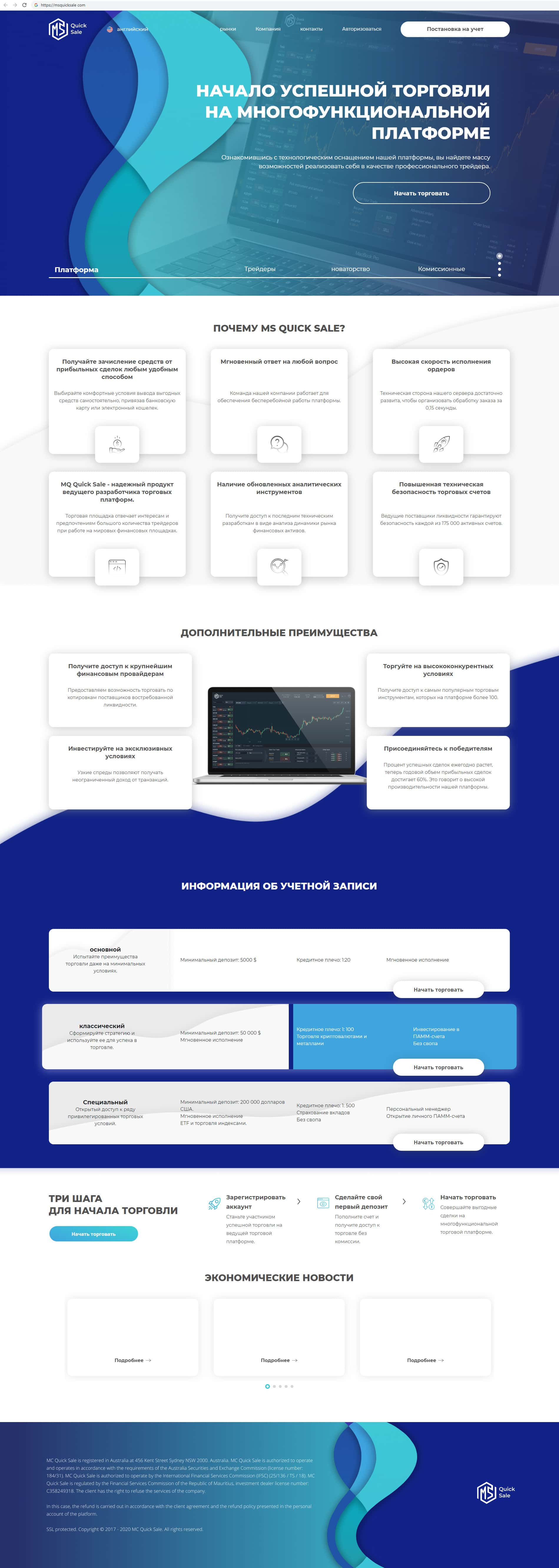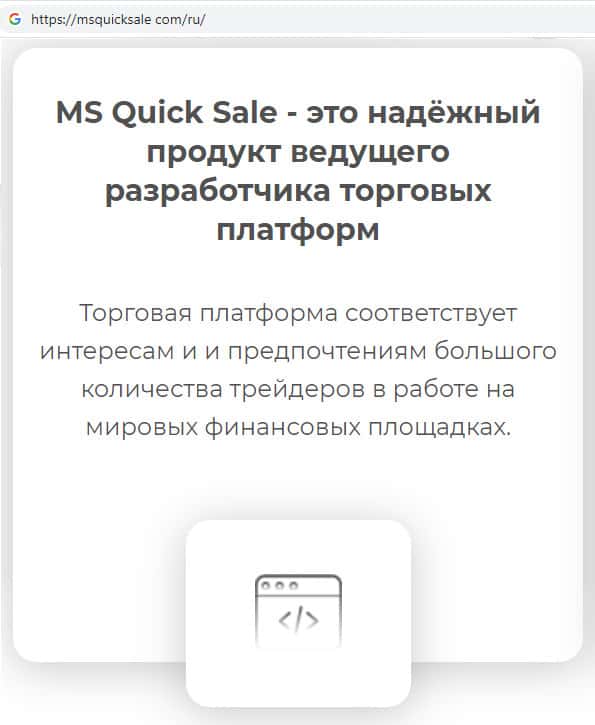 - Торговая платформа на сайте мошеннической организации MSQuickSale