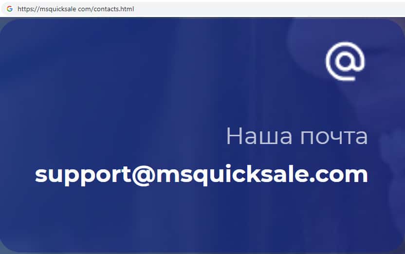 Аферисты MS Quick Sale на своем официальном интернет-ресурсе указывают адрес электронной почты, а именно: