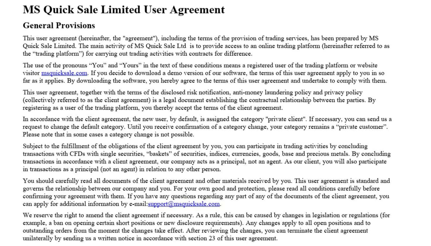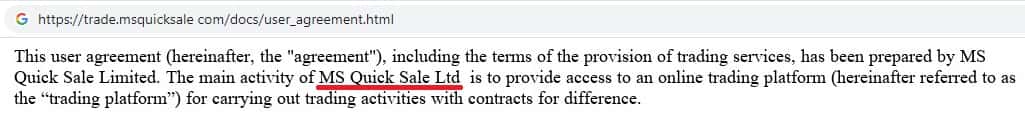 - Пользовательское соглашение на сайте скам-конторы MS Quick Sale