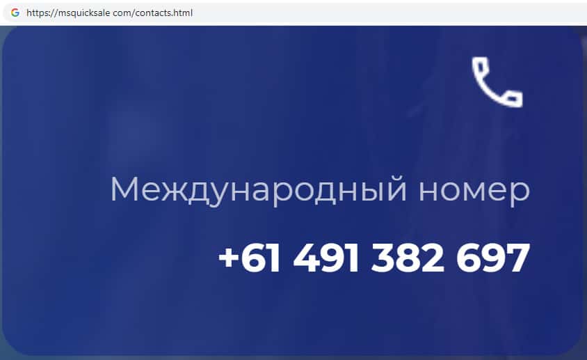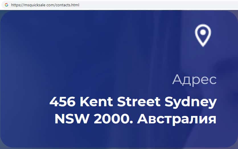 Связываться с мошеннической организацией MSQuickSale нельзя, поскольку все сведения о местонахождении компании фальшивы.