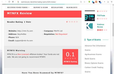 На сайте scamrecovery также подробно было изучен и описан принцип работы конторы. На данном сайте этот проект находится среди всех других сайтов-лохотронов, которые прославились на весь интернет своими мошенническими схемами. Автор решил сам связаться с этой компанией, но поработав с ними - понял, что это была плохая затея. Мнение последнего всё то же. MTNFX - просто жулики!!!