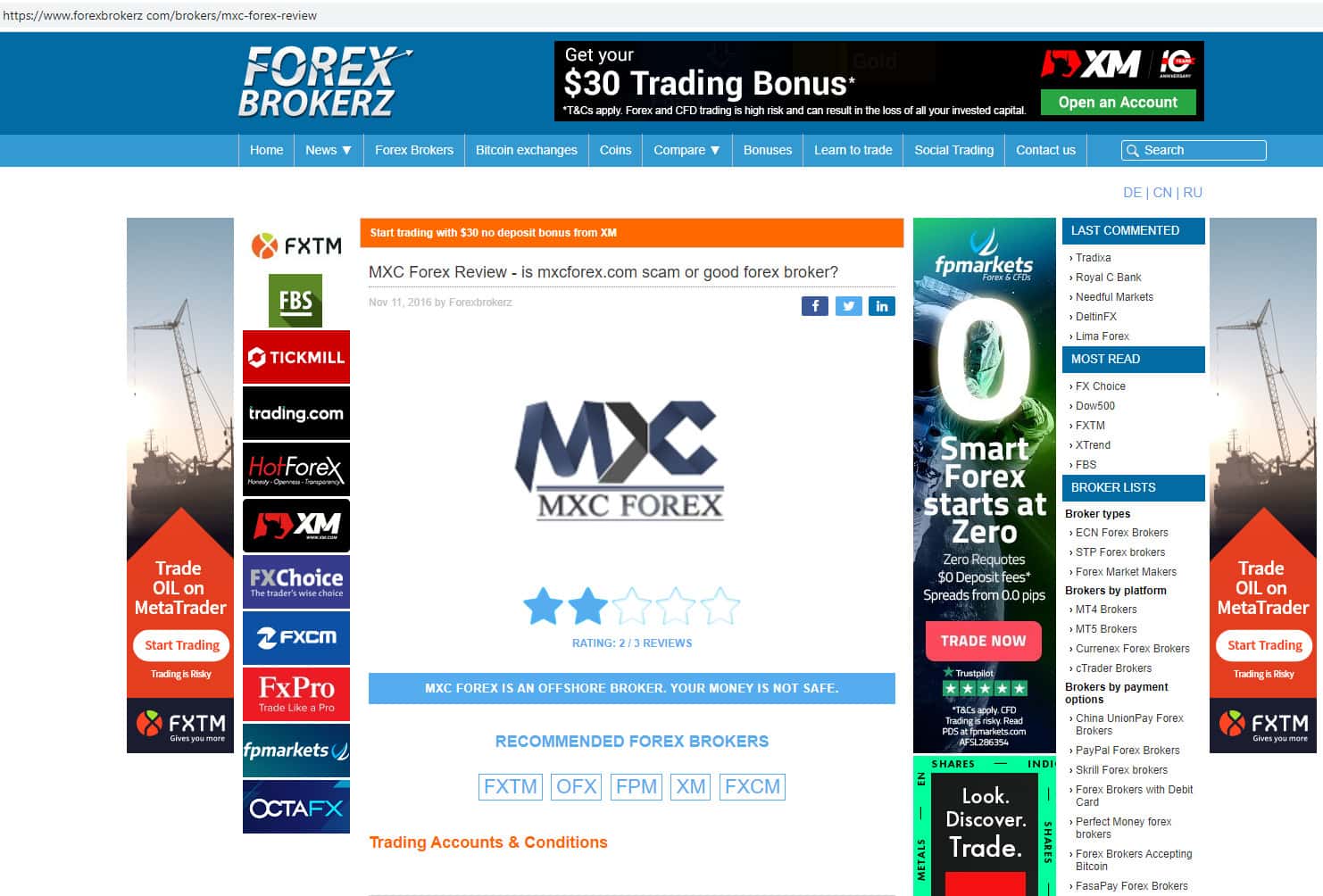 Обзор от forexbrokerz com на мошенническую кухню MXC Forex