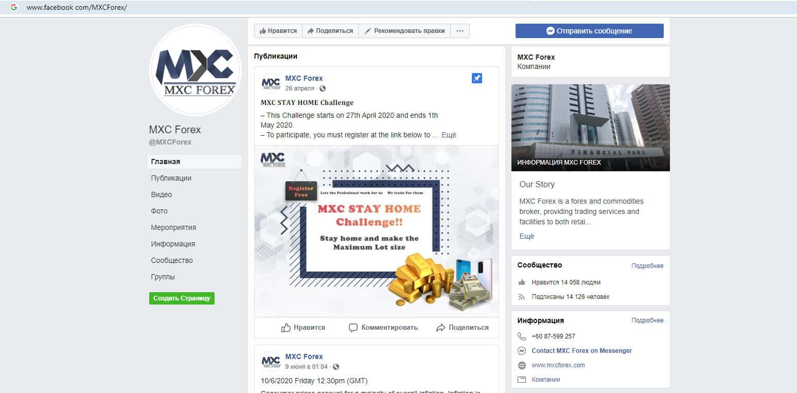 Страница мошенников МХС Форекс в социальной сети Марка Цукерберга - Facebook