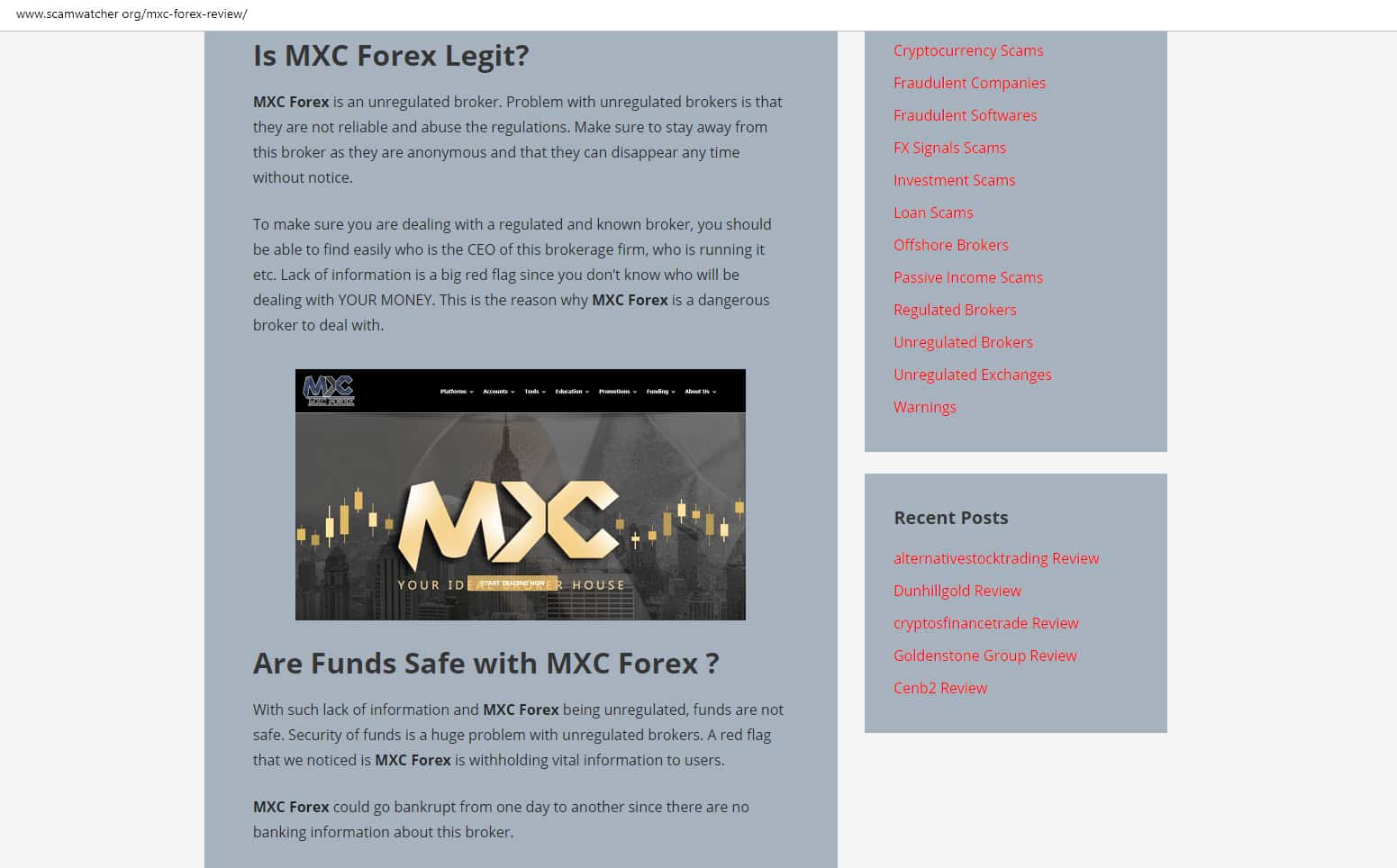- Обзор на сайте scamwatcher org на мошенническую инвестиционную контору MXC Forex