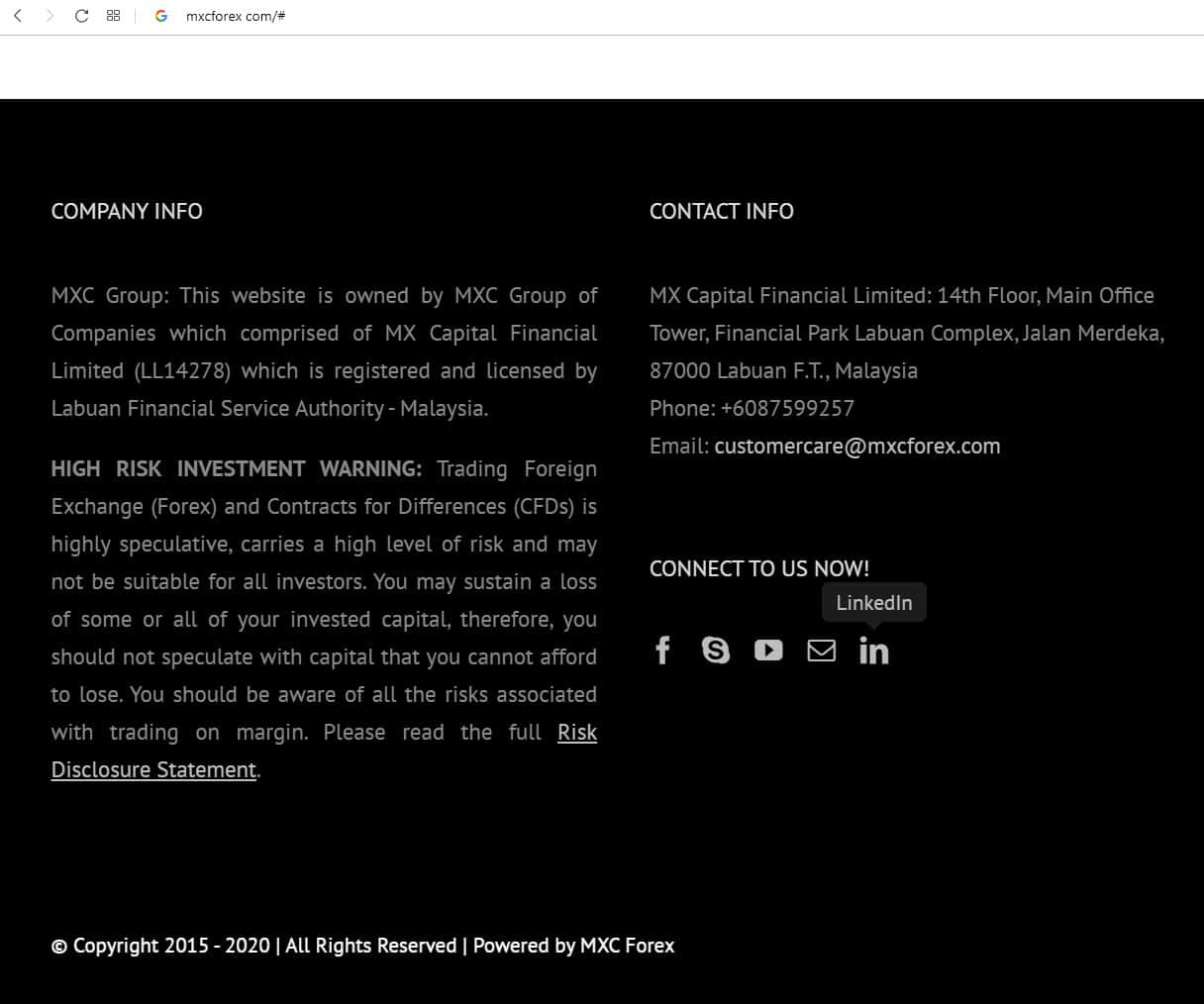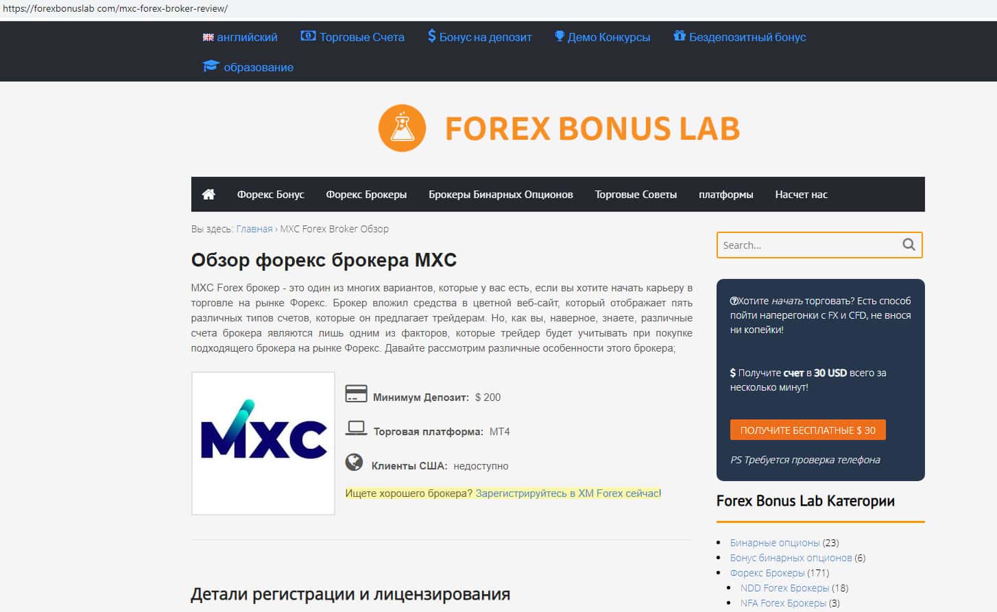 На сайте forexbrokerz com говорят, что MXC Forex – оффшорный брокер, основанный в 2015 году, который предлагает торговлю CFD на форекс, сырьевые товары и металлы на популярной платформе MT4. Автор статьи указывает на то, что ни одна из компаний, стоящих за брендом, не регулируется, поэтому в её сторону даже смотреть не надо.
