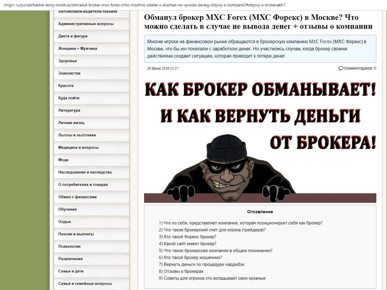 Сервис ЧиГиРи написал разоблачающую статью на МХС Форекс