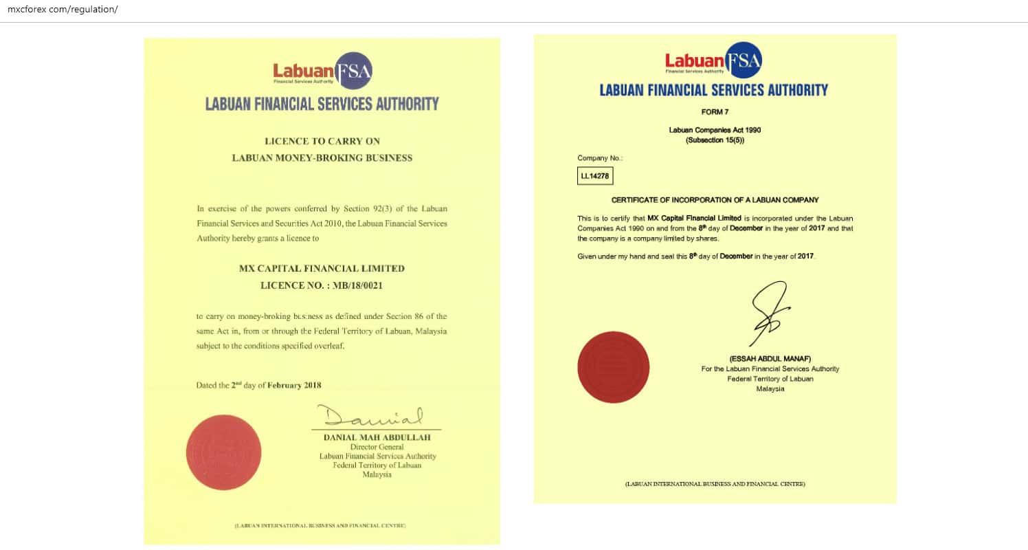 Автор статьи-обзора на сайте forexbonuslab com задаётся вопросом: законен ли MXC Forex? Из того, что они рассказывают как будто их регуляцию проводит Labuan Financial Service Authority с прилежащей лицензией, но в мире ещё нет ни одного настоящего брокера, кто получил эту лицензию, соответственно, это всё ложь и провокация.
