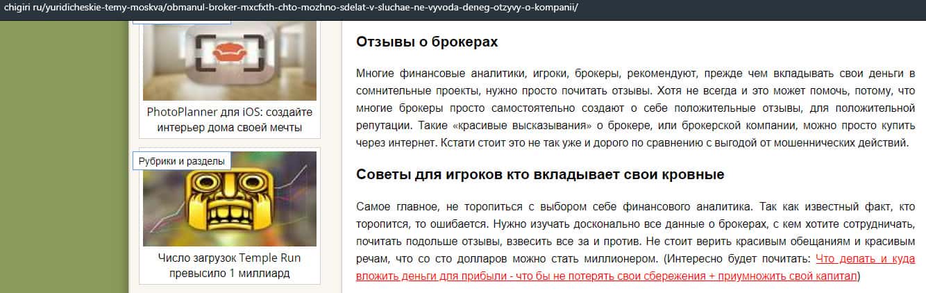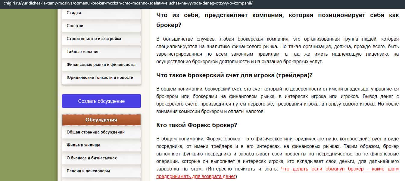 chigiri ru - ресурс помощи возврата средств с форекс-контор