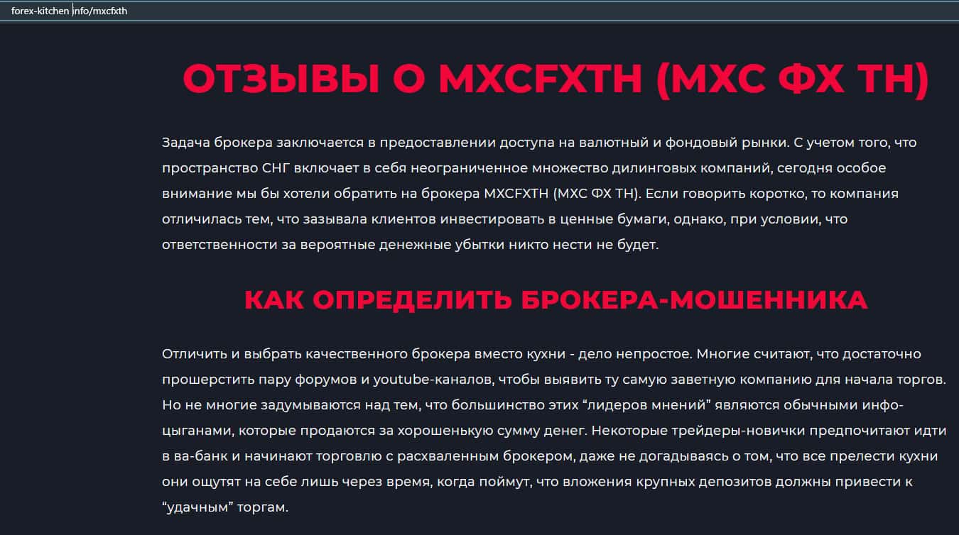mxcfxth com - официальный ресурс форекс-лохотрона МХС ФХ ТН