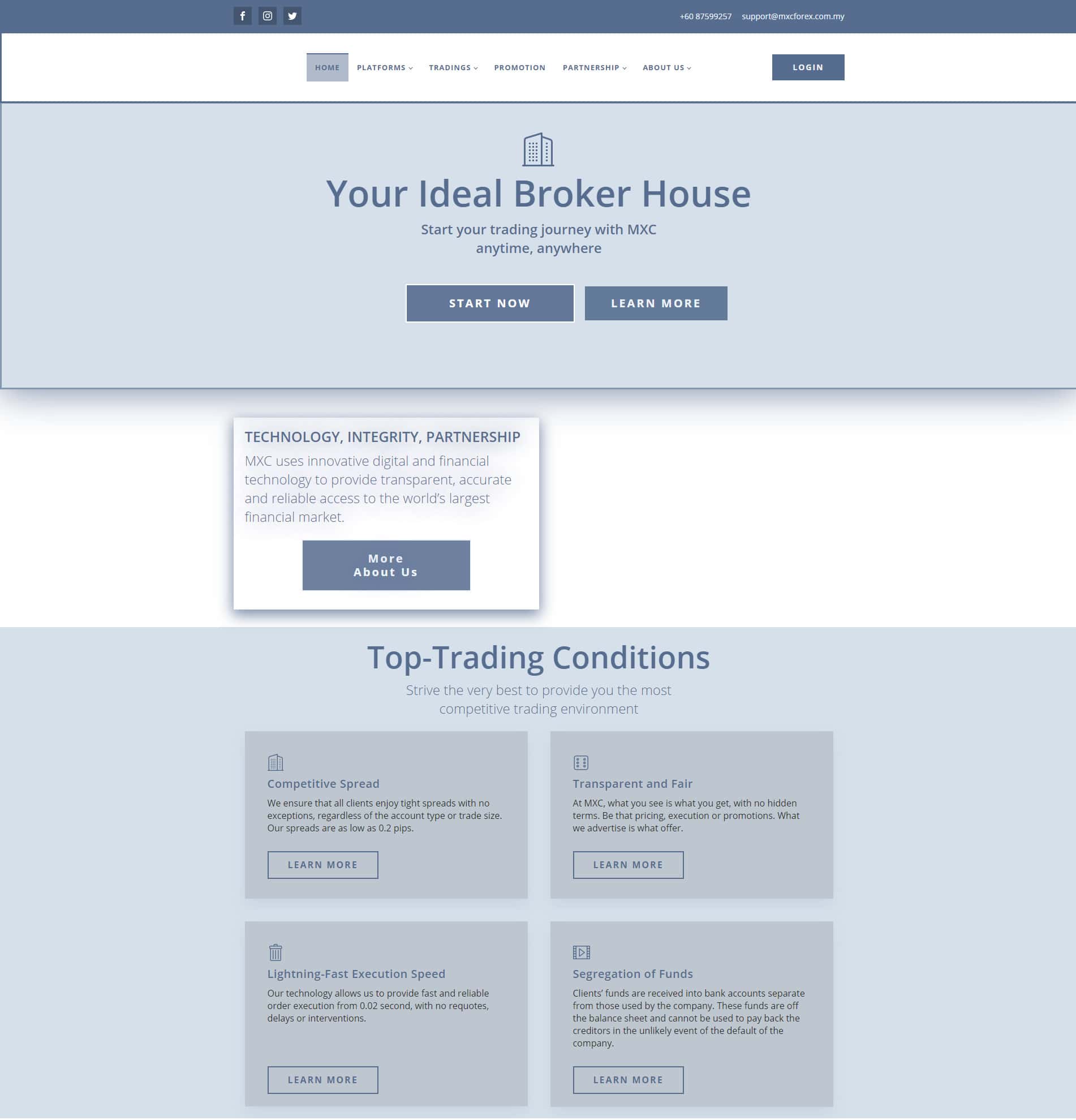 Сайт дилинговой кухни MXCFXTH был создан из обычного шаблона, при чем наполняли его не профессионалы. Скорее всего у них не хватило денег на наем нормального программиста, потому что из этого становится видно, как не работают некоторые разделы, и как глючит сайт в общем.