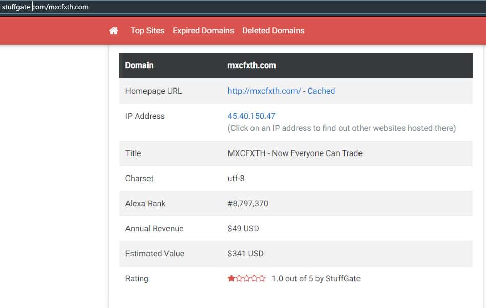 - Низкие рейтинги сайта брокерской конторы MXCFXTH