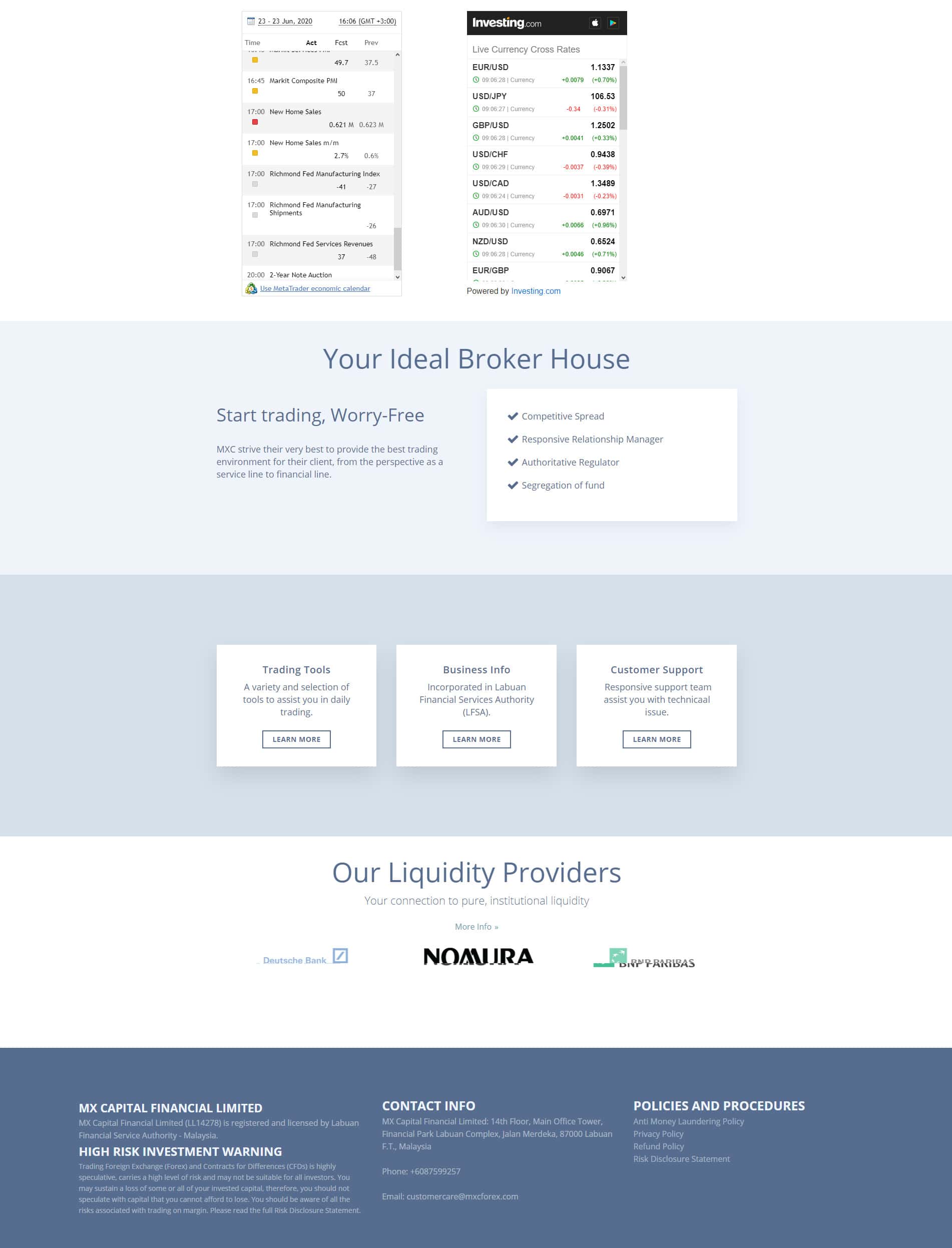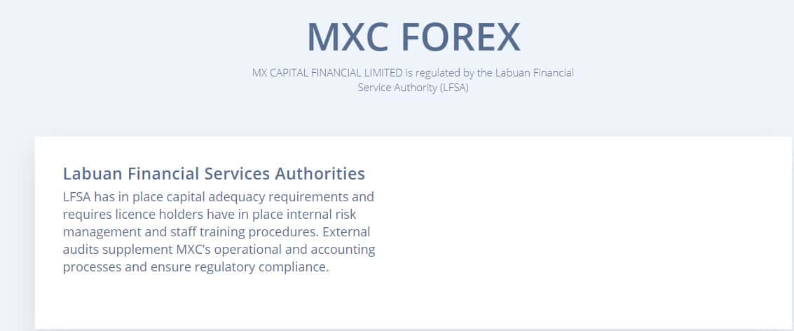 Как указывает контора MXCFXTH на своем ресурсе, они регулируется организацией под названием Labuan Financial Services Authorities. Но писать можно все что угодно, когда нет никакого документального подтверждения всему этому. Так что не стоит связываться с форекс-аферой, которая работает нелегально.