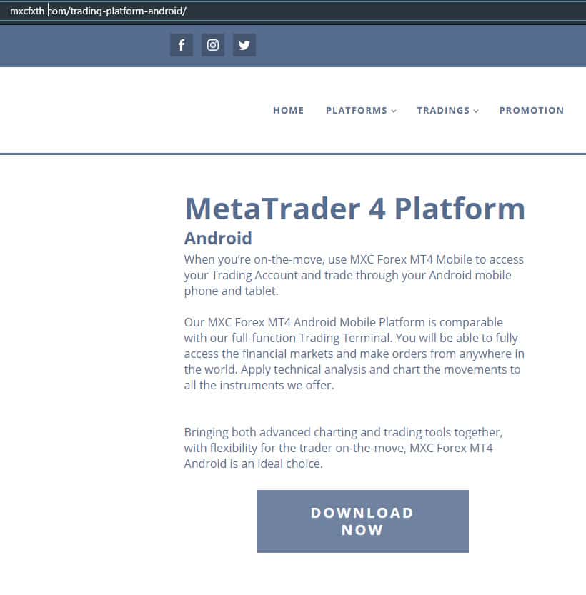 Вот как раз эта торговая платформа под названием Мета Трейдер 4 предлагается клиентам использовать на операционную систему Андроид. Клиент сможет слить деньги как со своего смартфона, так и с планшета. Аферисты MXCFXTH также могут использовать этот вид платформы для управления счетами своих клиентов, естественно с плачевными последствиями.