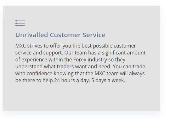 Описание того, что служба поддержки лохотрона MXCFXTH работает круглосуточно пять дней в неделю, не означает, что ваш вопрос будет решен. Особенно это касается вывода средств, так как в данном случае ваши контакты могут быть просто заблокированы, а деньги так и останутся лежать на их счете.