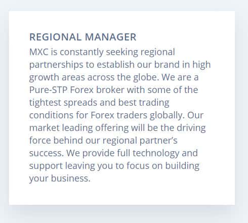 Ну и конечно же региональный менеджер, который нужен лохотрону MXCFXTH в каждом регионе каждой страны. Жулики это называют именно так, потому что человек, который будет этим заниматься, начнет обрабатывать потенциальных жертв открыв там офис, либо купит базу клиентов. В любом случае он станет соучастником всех разводов со стороны кухни МХС ФХ ТН.