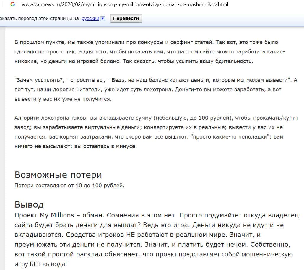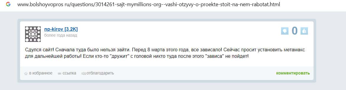- Мнение автора статьи о мошенниках из Май Миллионс