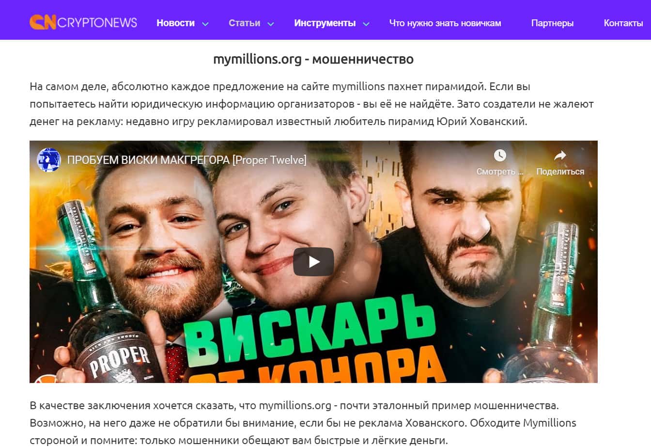 Разбор мошеннического сайта Май Миллионс на ресурсе crypto-news io