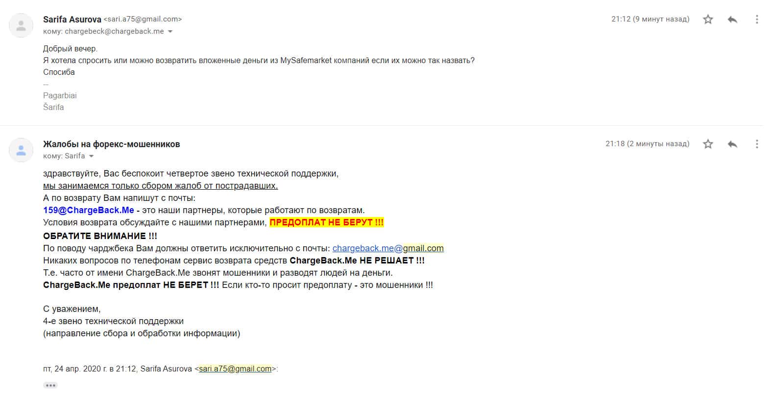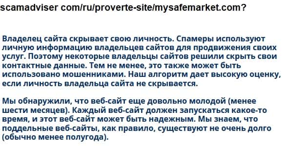 - Жалоба на контору MySafeMarket от очередного пострадавшего клиента