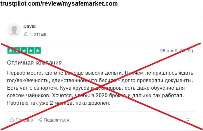 - Мошенники MySafeMarket нанимают ботов, чтобы те писали о них положительные отзывы