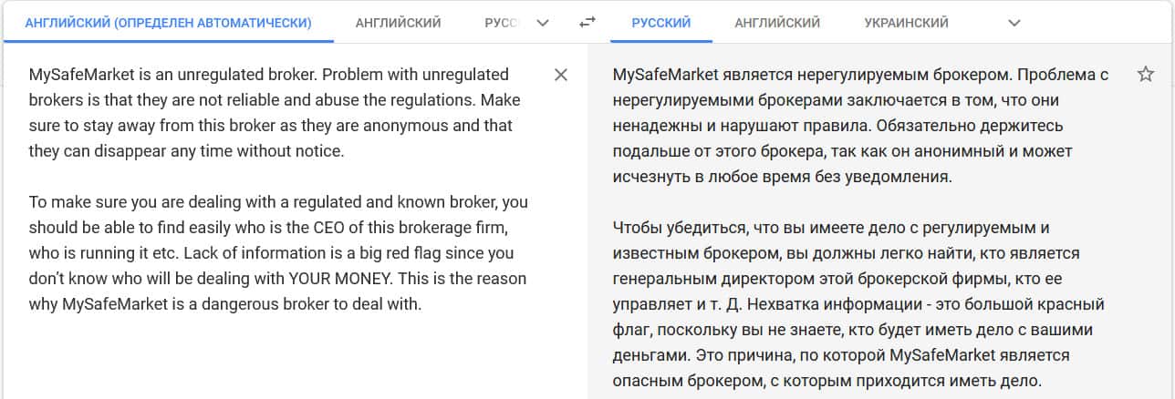 Шаражка MySafeMarket никем не регулируется и тут верно отмечено, что основная проблема с такими конторами в том, что потом трудно кому-то предъявлять претензии. Если компания зарегистрирована на маршаловых островах и не имеет никаких регистраций в России, то как вы будете предъявлять претензии? Поедите на Маршаловы острова?