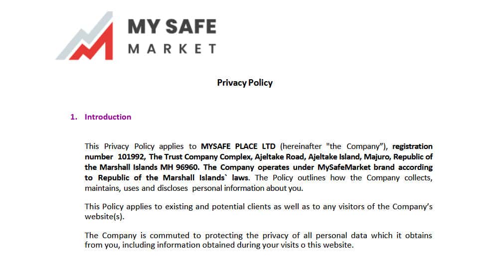 Политика конфиденциальности MySafeMarket тоже никак вас не защитит. С вероятностью 99% они ваши данные после закрытия солью третьим лицам просто. так поступают все мошенники, а потом вас начинают доставать смсками и рекламой с других лоховодских контор, поэтому 1000 раз подумайте прежде чем начинать с ними работать.