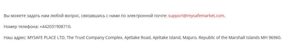 Связаться с мошенниками MySafeMarket можно следующими способами: