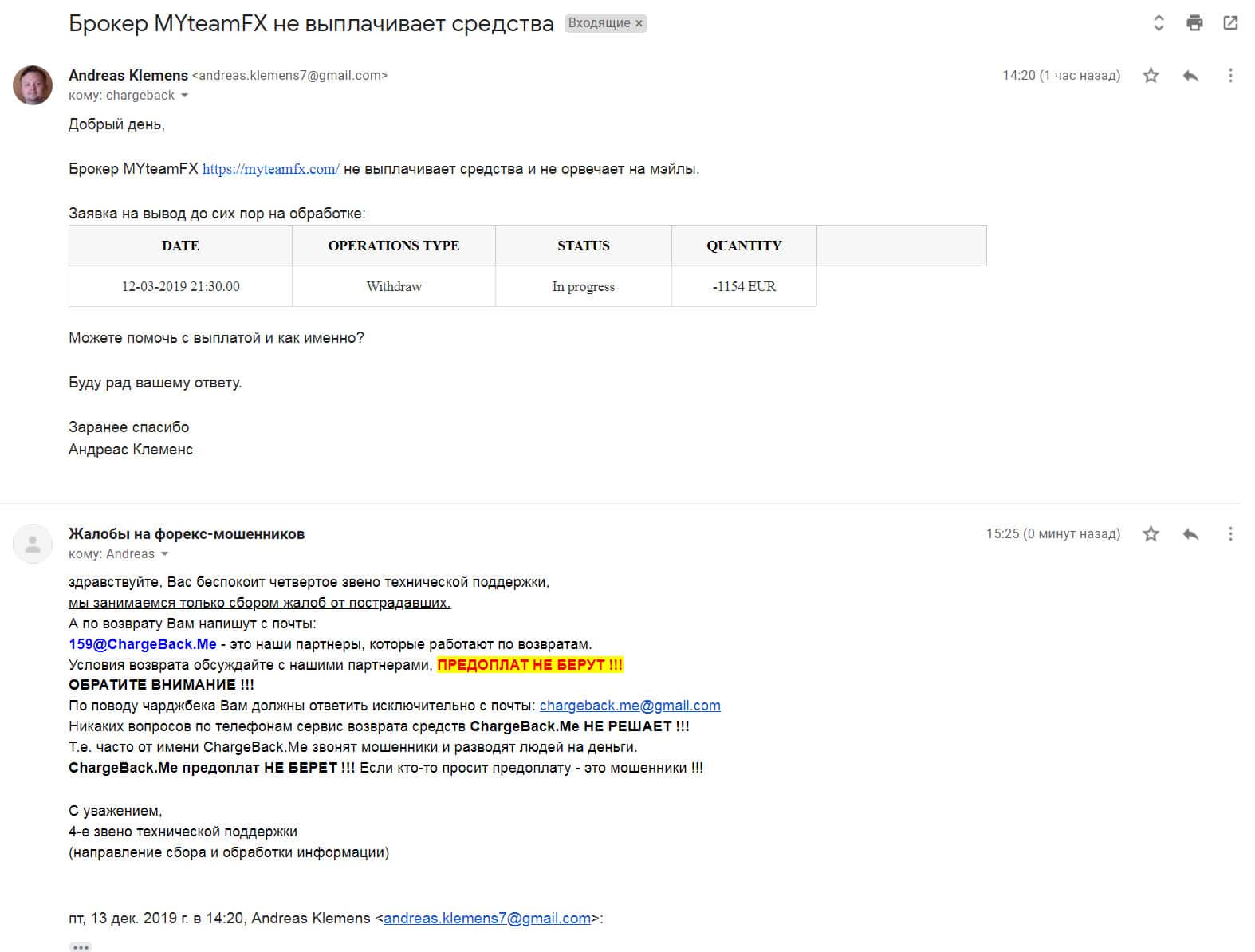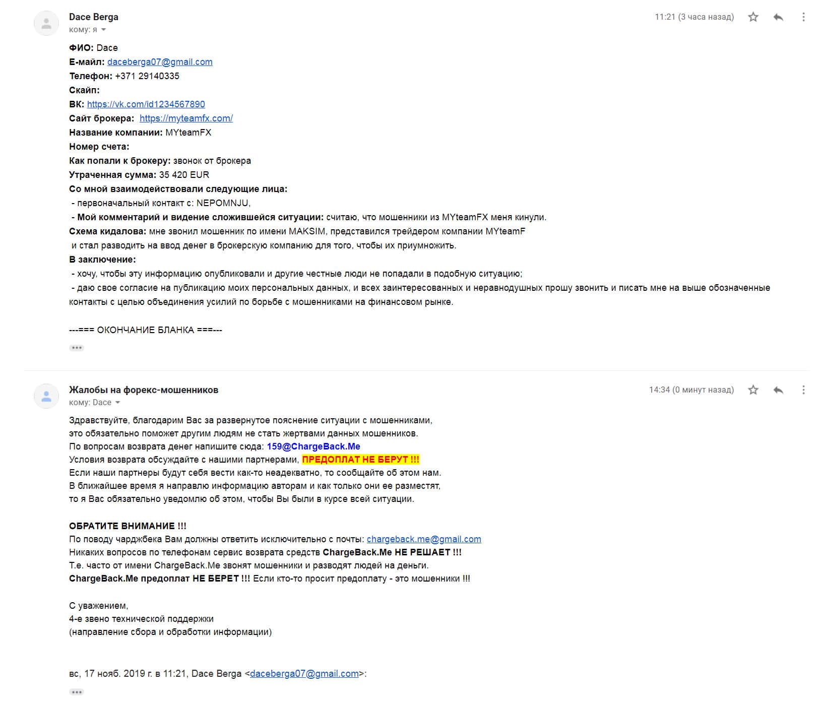 Очередной пострадавший клиент мошеннической конторы MYTeamFX
